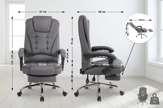 In And OutdoorMatch Bureaustoel Adaline - Grijs - Voetensteun - Kunstleer - Exclusieve Bureaustoel - Hoogwaardige Bekleding - Comfortabele Bureaustoel - Luxe Uitstraling