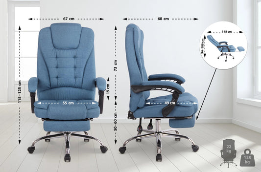 In And OutdoorMatch Bureaustoel Connie - Blauw - Voetensteun - Stof - Exclusieve Bureaustoel - Hoge Kwaliteit Bekleding - Comfortabele Bureaustoel - Luxe Uitstraling