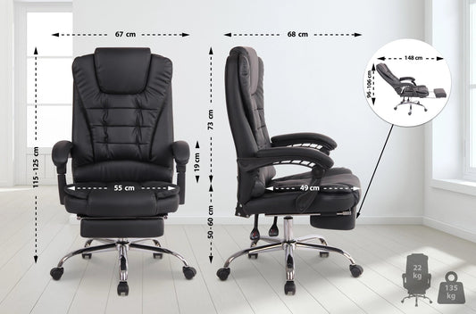 In And OutdoorMatch Bureaustoel Mattis - Zwart - Voetensteun - Kunstleer - Exclusieve Bureaustoel - Hoogwaardige Bekleding - Comfortabele Bureaustoel - Luxe Uitstraling