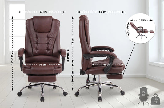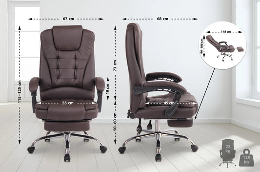 In And OutdoorMatch Bureaustoel Reed - Bruin - Voetensteun - Kunstleer - Exclusieve Bureaustoel - Hoge Kwaliteit Bekleding - Comfortabele Bureaustoel - Luxe Uitstraling