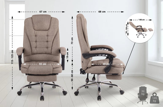 In And OutdoorMatch Bureaustoel Gillian - Beige - Voetensteun - Stof - Exclusieve Bureaustoel - Hoogwaardige Bekleding - Comfortabele Bureaustoel - Luxe Uitstraling