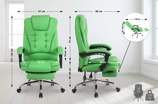 In And OutdoorMatch Bureaustoel Warrick - Groen - Voetensteun - Kunstleer - Exclusieve Bureaustoel - Hoge Kwaliteit Bekleding - Comfortabele Bureaustoel - Luxe Uitstraling