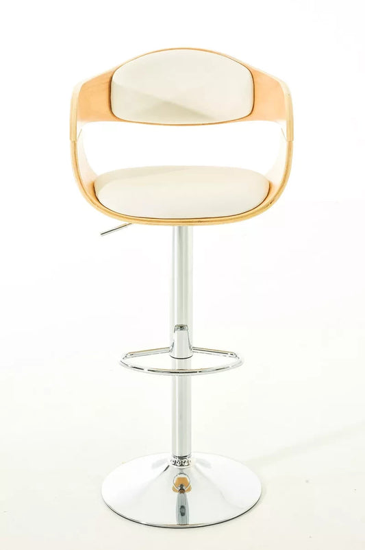In And OutdoorMatch Designer barkruk Ted - Creme kunstleer in combinatie met houten zitting - in hoogte verstelbaar - zithoogte 63 tot 77 cm - deluxe