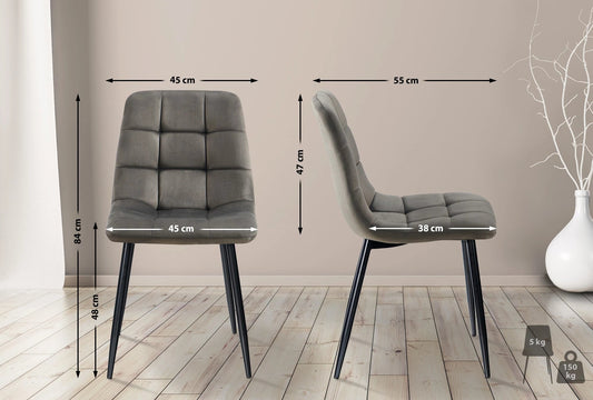 In And OutdoorMatch Eetkamerstoelen Albina - Set van 2 Moderne keukenstoelen - Smooth Velvet Surface - Grijs