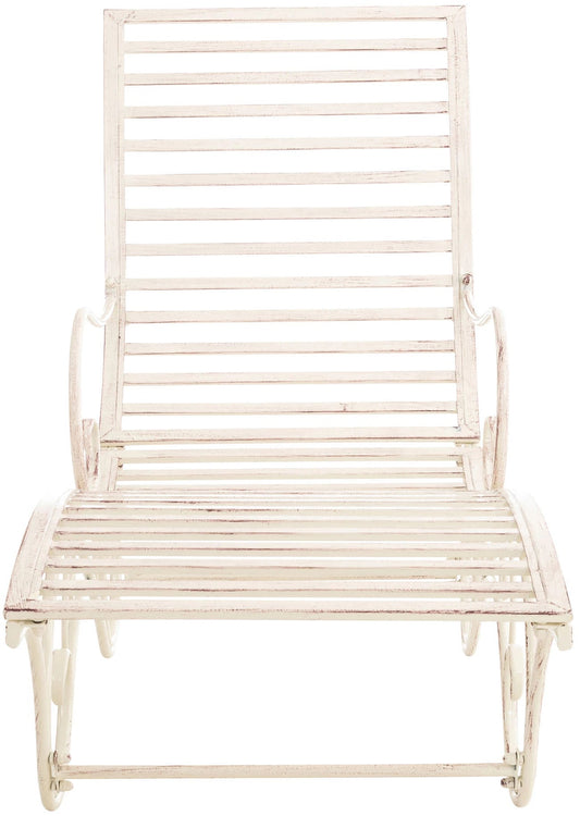 In And OutdoorMatch Tuinligstoel Roman - Wit - Ijzer - Buitenligstoel - Ligstoel - Hoge kwaliteit - Luxe Stijlvolle Tuinligstoel - Tijdloos Design