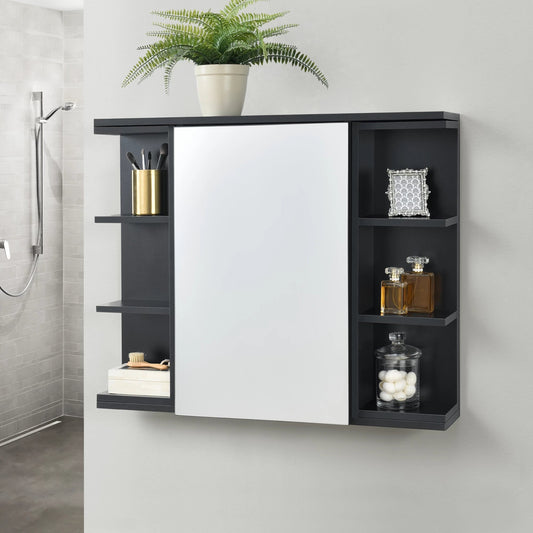 In And OutdoorMatch Bathroom Furniture Leora - With Mirror - Mirror Cabinet - Black - Chipboard - Stylish Design