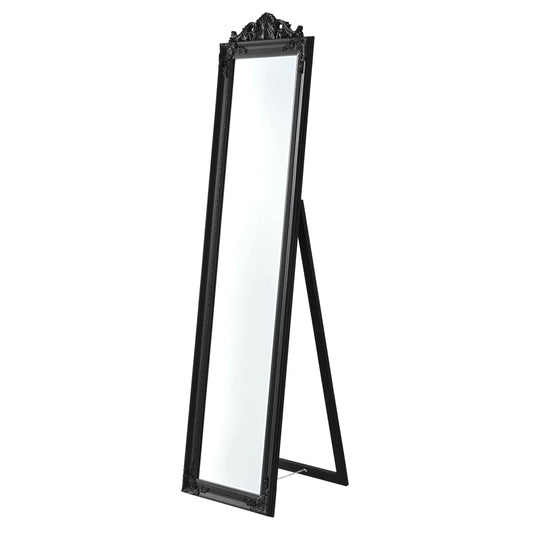 In And OutdoorMatch Freestanding mirror Eulah - With Baroque Frame - Adjustable - 160x40 cm - Black - Eucalyptus wood - Luxury Look