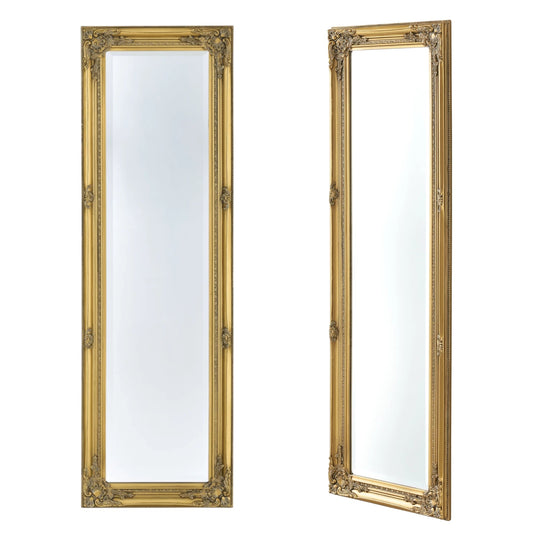 In And OutdoorMatch Wall Mirror Aida - With Baroque Frame - 132x42x35 cm - Gold - Eucalyptus Wood - Luxury Design