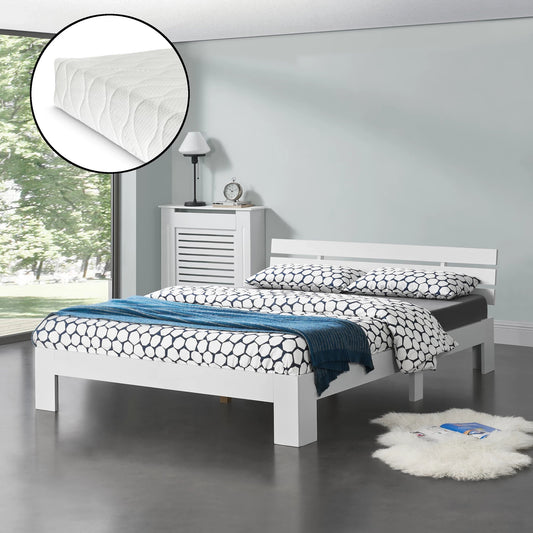 In And OutdoorMatch Wooden Bed Stefan - Pine - With Mattress - 140x200 cm - White - Wear-resistant - Made in the EU