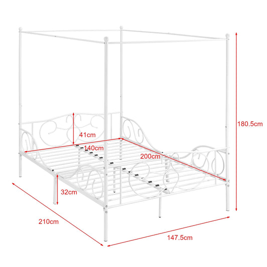 In And OutdoorMatch Metal Canopy Bed Ima - With Bed Base - 180x200 cm - Black - Stable Frame - Minimalist Design