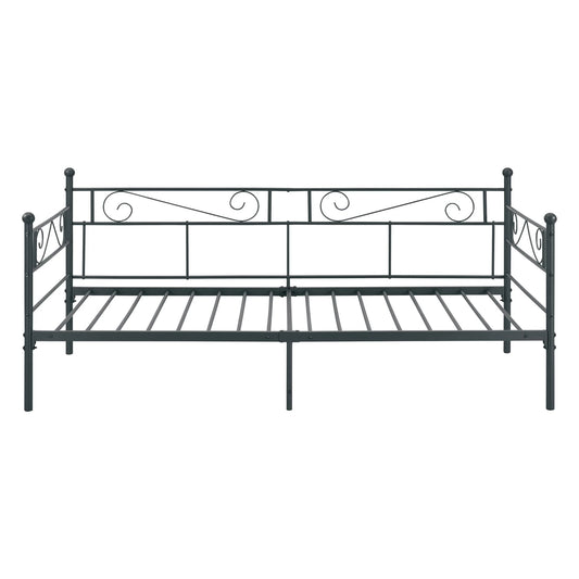 In And OutdoorMatch Single Sofa Bed Zizi - With Mattress - 90x200 cm - Dark Gray - Vintage Design - Metal Bed Frame