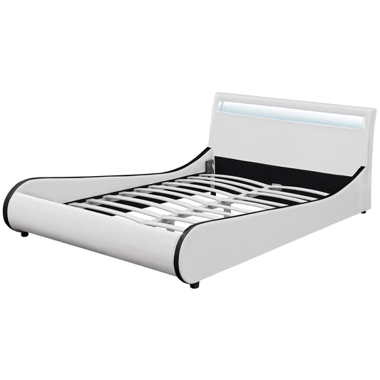 In And OutdoorMatch Bed Ima - LED - Bed frame - Faux leather - 140x200 cm - White - Modern design