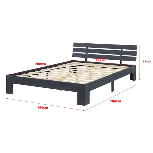 In And OutdoorMatch Wooden Bed Jesse - Pine - With Bed Base - 140x200 cm - Dark Gray - Quick Assembly