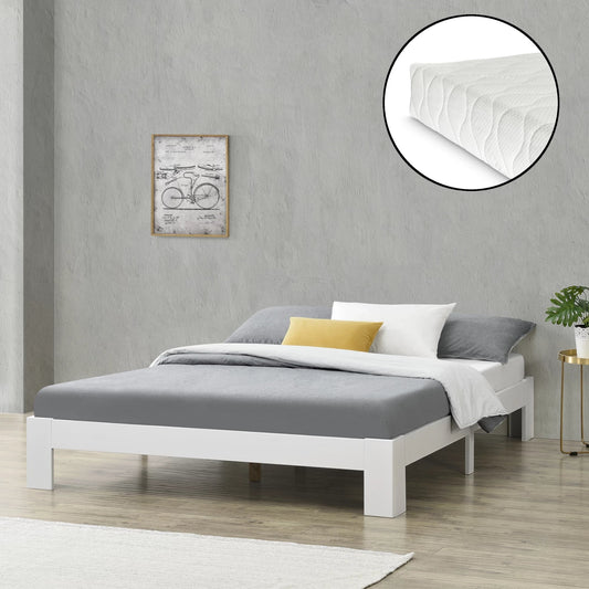 In And OutdoorMatch Wooden Bed Stefan - Pine - With Mattress - 140x200 cm - White - Made in the EU - Wear-resistant