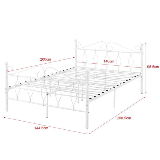 In And OutdoorMatch Metal Bed Jazmyne - Steel - With Bed Base - 140x200 cm - White - Quick assembly