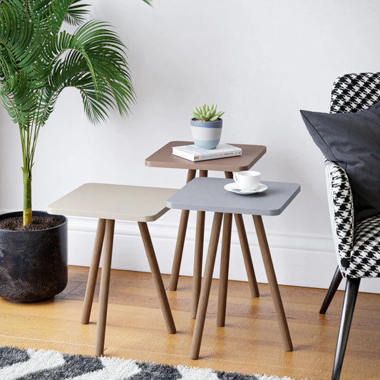 In And OutdoorMatch Side Table Darrell - Set of 3 - Multi-colored - Chipboard and Beech - Stylish Design