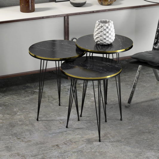In And OutdoorMatch Side Table Alicia - Set of 3 - Marble Black and Black - Chipboard and Metal - Stylish design