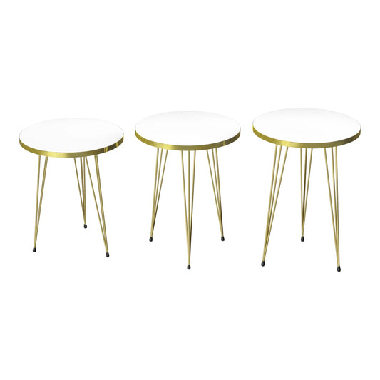 In And OutdoorMatch Side Table Matri - Set of 3 - Round - White and Gold - Chipboard and Metal - Stylish design