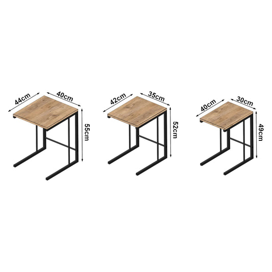 In And OutdoorMatch Side Table Lina - Set of 3 - Black and Wood-colored - Chipboard and Metal - Stylish Design