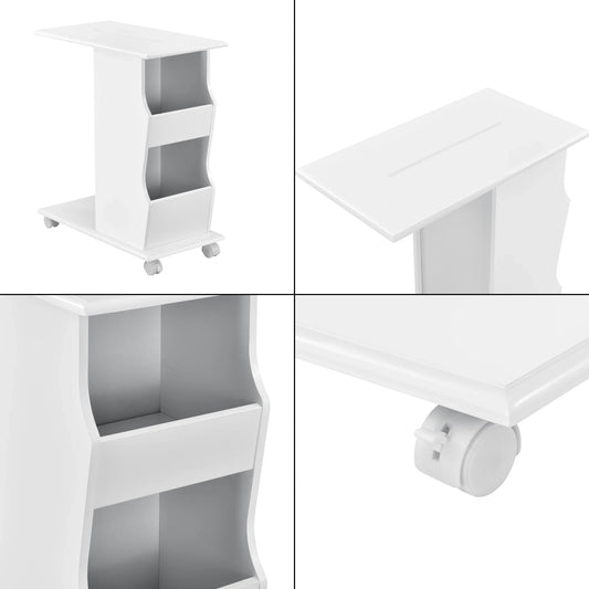 In And OutdoorMatch Side Table Lon - On Wheels - With Brake - 53x30x63 cm - MDF - White - With 4 Compartments - Stylish Design