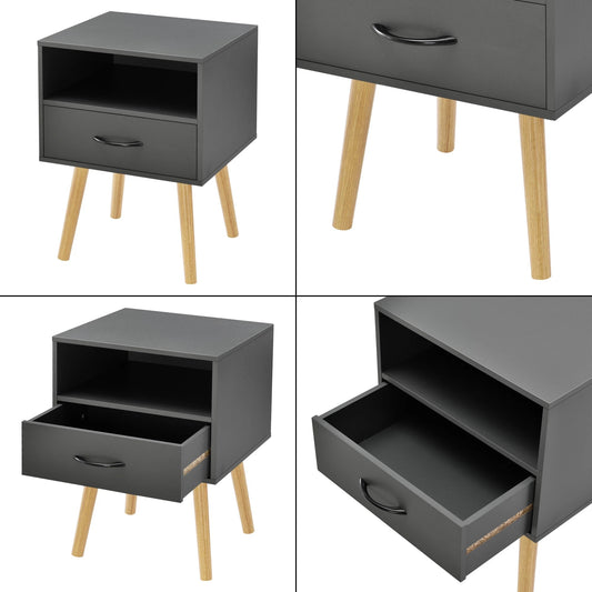 In And OutdoorMatch Bedside Table Genevieve - With Drawer and Open Compartment - 57x42x40 cm - Dark Gray - Modern Design