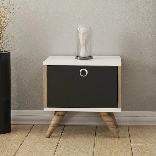 In And OutdoorMatch Bedside table Tyler - 41x40x35 cm - White, Oak and black - Chipboard - Stylish Design