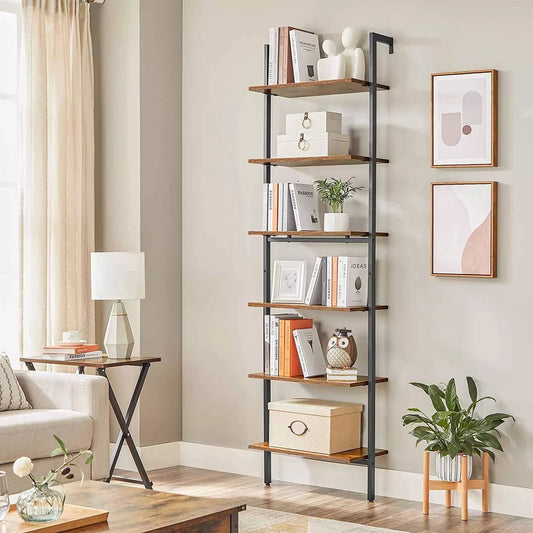 In And OutdoorMatch Freestanding Bookcase Mabelle - 6 Tier - Ladder Shelf - Bookcase - Decor - Bedroom - Living Room - Office - 60x30x204.8cm - Industrial Design - Vintage Brown/Black