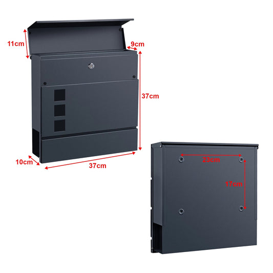 In And OutdoorMatch Letterbox Stacy - 37x37x10.5 cm - Anthracite - Steel - Lockable - Protective flap - With newspaper cover