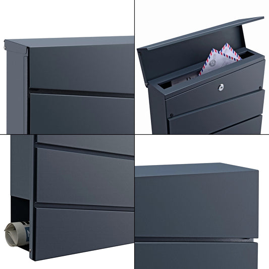 In And OutdoorMatch Letterbox Howard - 37x37x10.5 cm - Steel - Anthracite - With Protective Flap and Newspaper Roll - Visually attractive