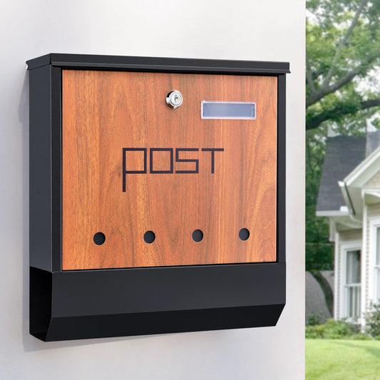 In And OutdoorMatch Letterbox Amira - 37x37x10.5 cm - Anthracite and Wood-colored - Steel - Lockable - Protective flap - With newspaper cover