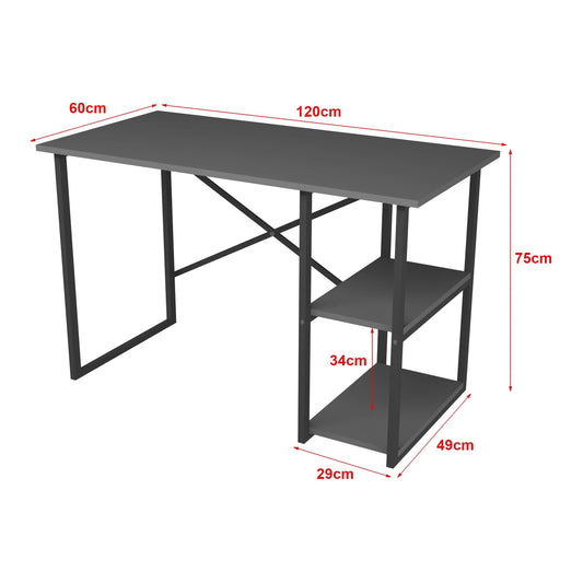 In And OutdoorMatch Desk Dublin - Laptop table - 75x120x60 cm - Black and Oak - Chipboard and Metal - With 2 Shelves - Modern Design