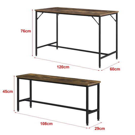 In And OutdoorMatch Dining room set Jacklyn - Dining table with black and wood-colored benches - Steel and chipboard - Modern design