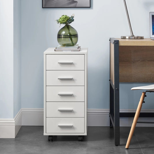 In And OutdoorMatch Office Cabinet Rashad - Chest of Drawers - On Wheels - 63x33x38 cm - White - Chipboard - Modern Design