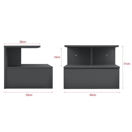 In And OutdoorMatch Floating Bedside Table Ignatius - 30x40x29 cm - With 2 Drawers - Dark Gray - Chipboard - Stylish appearance