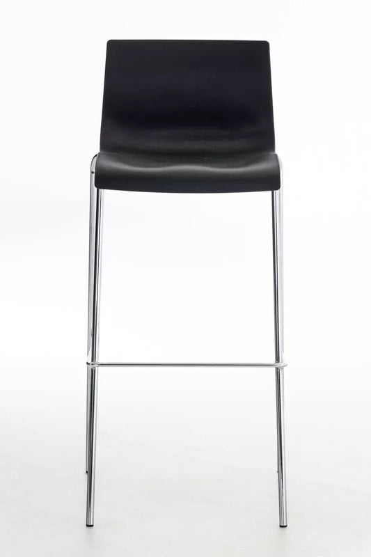 In And OutdoorMatch Minimalist Bar Stool Marcelle - Set of 2 - Black - Chrome - 4-Legged Base - Modern Design - Backrest - Footrest - For Kitchen and Bar - Plastic Seat