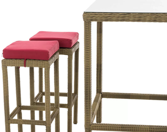 In And OutdoorMatch Bar table with chairs Orie - Red/Cream - Garden bar Rattan - Set of 4 Orie - Indoor and outdoor - Weatherproof - Garden furniture - 4 persons