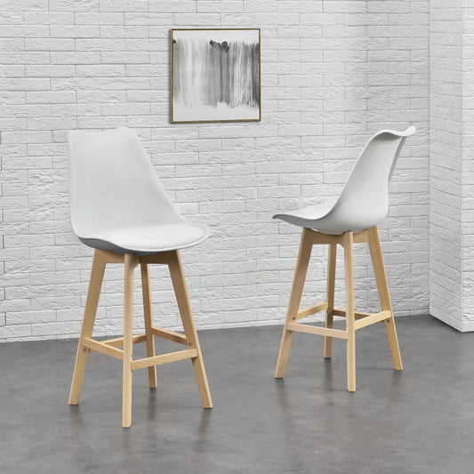 In And OutdoorMatch Bar Stool Erik - Set of 4 - Imitation leather and Beech - 105x48x58 cm - White - Modern design