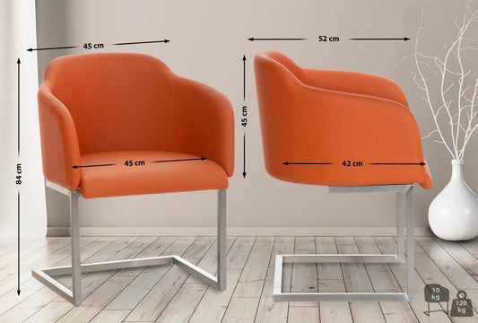In And OutdoorMatch Chair Joanna - Orange - Sled chair - Faux leather - Visitor chair - Office chair - Dining room chair - High quality upholstery - Stylish chair - Luxury design