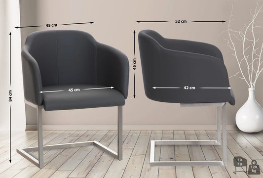 In And OutdoorMatch Chair Angus - Grey - Faux leather - Visitor chair - Office chair - Dining room chair - High quality upholstery - Stylish chair - Classic design
