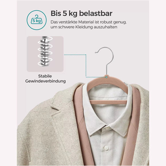 In And OutdoorMatch Velvet clothes hanger Edna - 50 pieces - non-slip clothes hanger - rose gold rotating hook - thickness 0.6 cm - space saving - 45 cm long - for jacket - shirt - skirt - trousers - tie - pink
