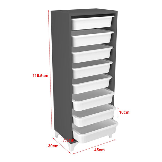 In And OutdoorMatch Storage Cabinet Leo - With 8 Baskets - 116.5x45x30 cm - Anthracite and White - Chipboard and Plastic - Storage compartments