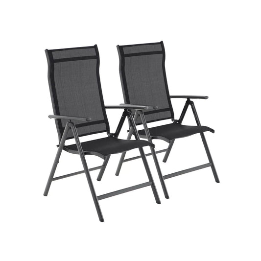 In And OutdoorMatch Garden Chairs Lucio - Set of 4 - Folding chairs - Outdoor chairs - With Robust Aluminum Frame - Backrest - Adjustable in 8 positions - Loadable up to 150 kg - Black