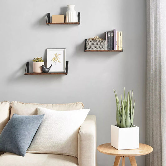In And OutdoorMatch Wall Shelf Keanu - Industrial - Set of 3 - Floating - Wall Rack - Wall Shelf - Bookshelf - Photo Shelf - Brown