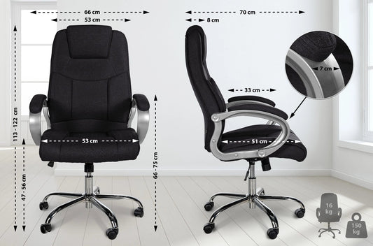 In And OutdoorMatch Bureaustoel Roy - Zwart - Stof - Hoogwaardige bekleding - Exclusieve bureaustoel - Luxe uitstraling
