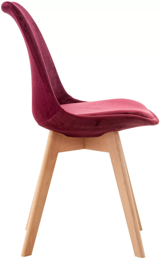 In And OutdoorMatch Luxe Stoel Clementina - Bordeaux - Luxe Design - Fluweel - Beukenhout - Voor Keuken en Bar - Rugleuning - Gestoffeerde Zitting