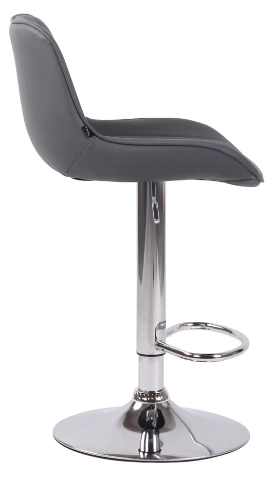 In And OutdoorMatch Luxe Barkruk Lujan - Grijs - Chroom - Luxe Design - Rugleuning - Voetensteun - Voor Keuken en Bar - Zitting Gestoffeerd - Imitatie Leder
