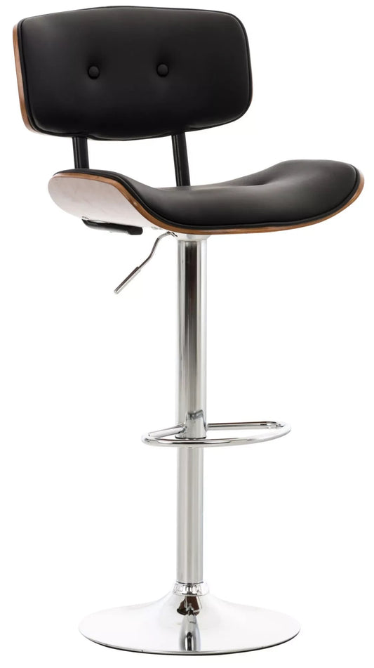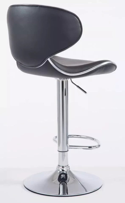 In And OutdoorMatch Barkruk Tania Nyah - Zwart - Chroom - Modern Design - Rugleuning - Voetensteun - Voor Keuken en Bar - Gestoffeerde Zitting - Imitatie Leder