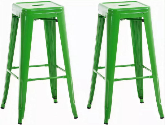 In And OutdoorMatch Rustieke Barkruk Jewell - Groen - Industrieel Ontwerp - Set van 2 - Voetsteun - Voor Keuken en Bar - Metalen Zitting