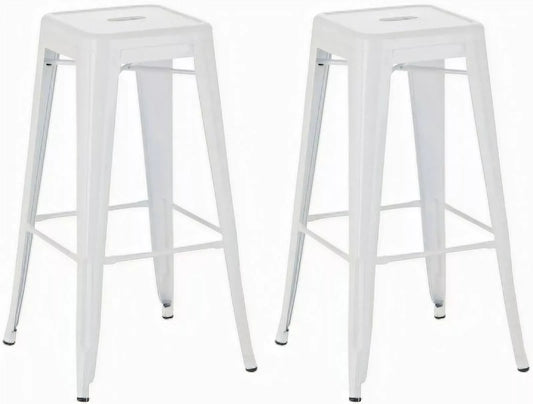 In And OutdoorMatch Rustieke Barkruk Ocie - Wit - Industrieel Ontwerp - Set van 2 - Voetsteun - Voor Keuken en Bar - Metalen Zitting