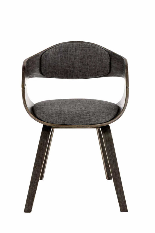 In And OutdoorMatch Stoel Curtis - Donkergrijs en Bruin - Robuuste Houten Zitting - Bezoekersstoel - Eetkamerstoel - Stof - Hoge Kwaliteit Bekleding - Speelse Stijl Stoel - Stijlvolle Eetkamerstoel